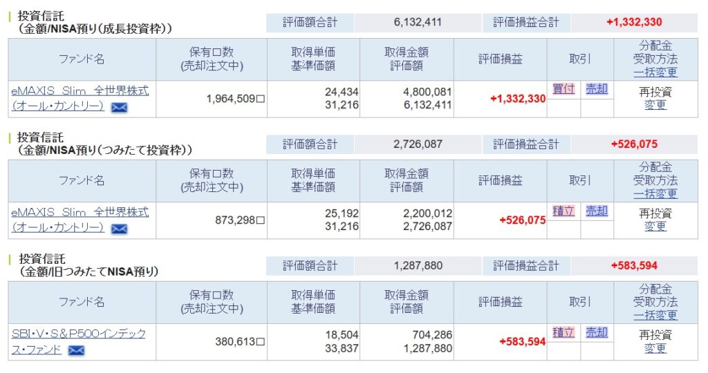 けど、新NISAになってオルカン「eMAXIS Slim 全世界株式(オールカントリー)」で運用している。