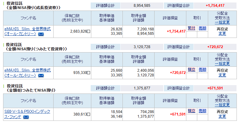 2026年1月2日現在のNISA運用状況はこんな感じ。