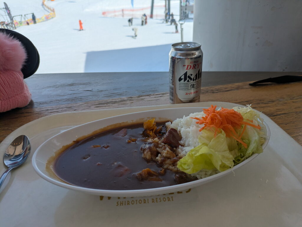 前回のウィングヒルズ白鳥では山の中腹辺りにあるロッジでビールとカレーを頂いた。